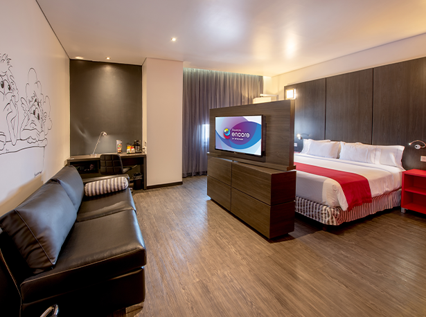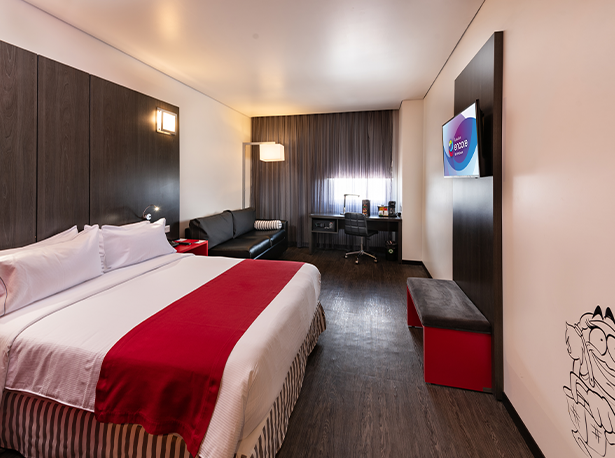 Habitación con cama Queen Size y sofá cama.