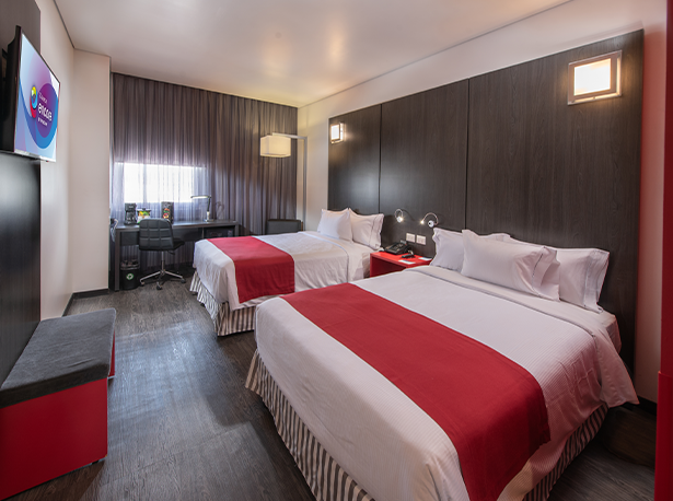 Habitación con dos camas matrimoniales.